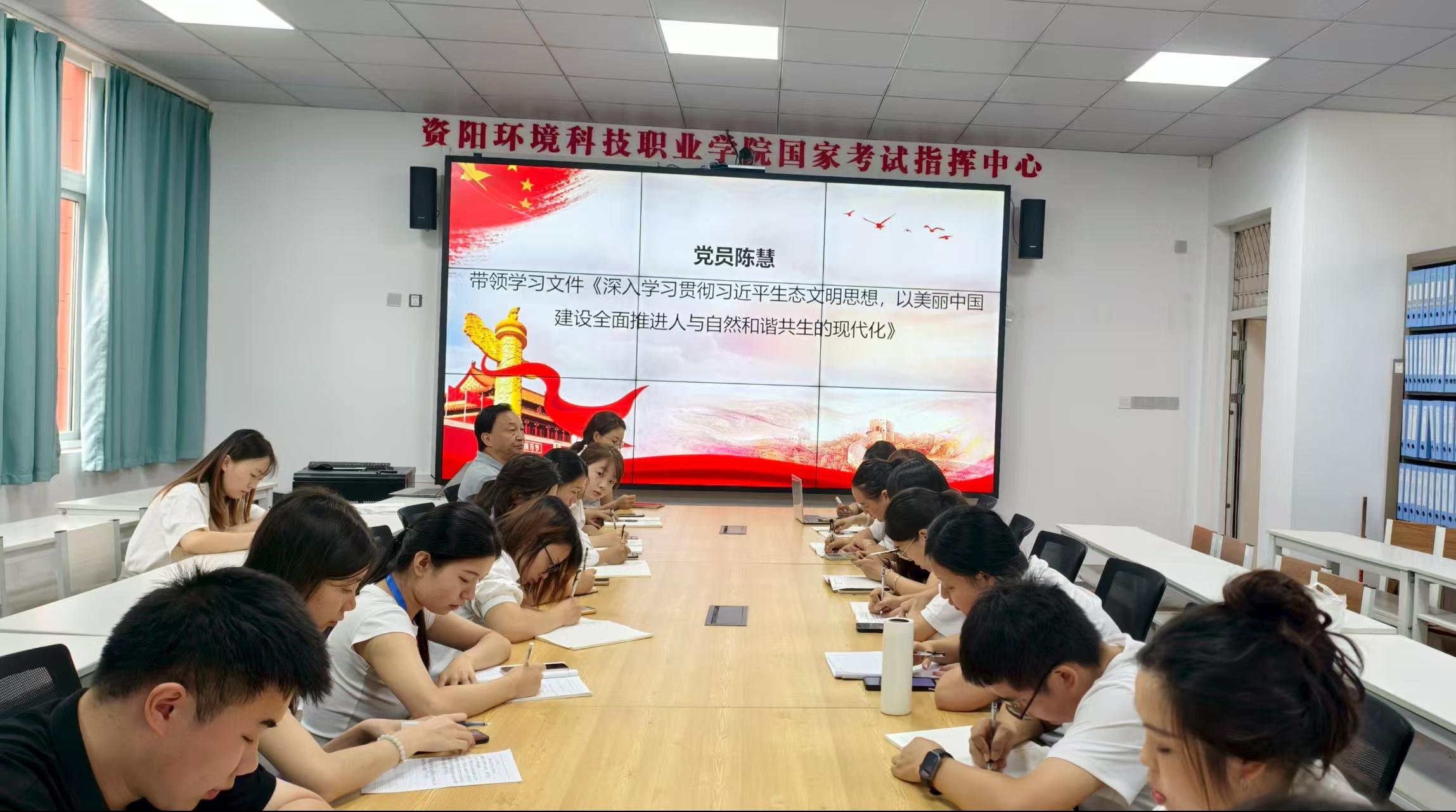 为深刻学习习近平生态文明思想,不断深化对生态文明建设规律的认识,2025年8月25日,资阳环境科技职业学院马克思主义学院党总支在B211开展八月第二次理论学习会。