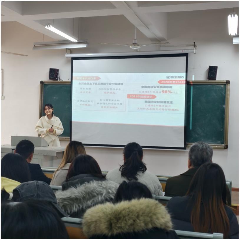 《形势与政策》课程组的李丽莎老师以《聚焦平安中国治安名片:看得见的安全感》为题,用真实数据展现中国“最安全国家”的治安成就。