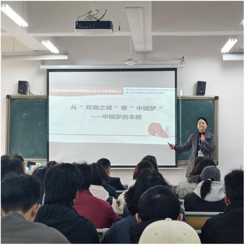 在《习近平新时代中国特色社会主义思想概论》课程组中,余建蓉老师借双奥之城视角,从硬件实力、文化表达、人民参与三方面解析“中国梦的本质”;司宇老师以《从“纸褙福州”到幸福新城——把为人民造福的事情办好办实》为题,通过福州城市变迁案例阐释“为民造福”的永恒课题。
